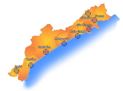 Nossa base territorial abrange os nove municípios da Região Metropolitana da Baixada Santista – Santos, São Vicente, Guarujá, Bertioga, Cubatão, Praia Grande, Mongaguá, Itanhaém e Peruíbe – e Itariri, no Vale do Ribeira.